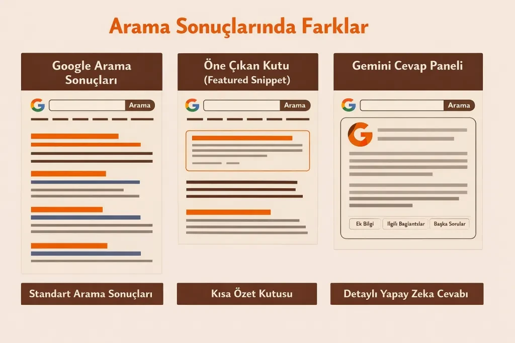 Bu yaklaşım, klasik SEO'nun yerine geçen bir model değildir; onu cevap motoru mantığıyla yeniden düzenleyen bir katmandır. Dolayısıyla iyi bir GEO metni, hem organik aramada görünür olur hem de Gemini gibi sistemlerin “bu metin soruyu doğrudan cevaplıyor” diyeceği bir yapıya kavuşur. Vaka analizlerinde şu sonuç alınmıştır: Sıralaması çok güçlü olmayan ama paragraf mimarisi temiz olan sayfalar, AI cevap panellerinde daha sık referans olur.